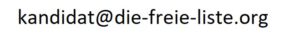 Wir untersagen ausdrücklich die Verwendung und Weitergabe der Kandidatenbilder in jeder Form ohne ausdrückliche Genehmigung von die-freie-liste.org e.V. und der Kandidaten. Ebenso die Verwendung unserer Logos.